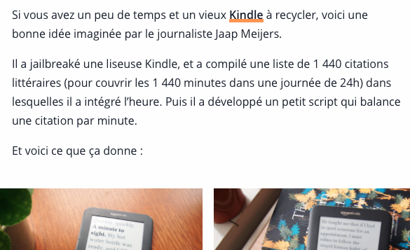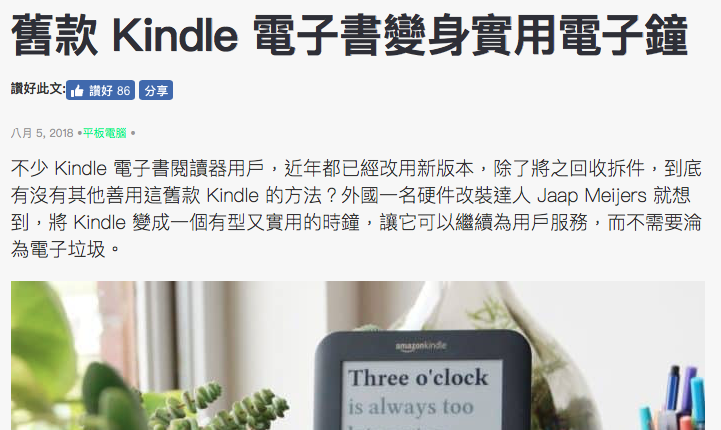 De handleiding die ik schreef over de klok trekt internationaal de aandacht. De grote technologie-websites Hackaday, Gizmodo, The Verge en Hacker News schreven erover, ik werd geïnterviewd door de Amerikaanse ‘positive journalism’-nieuwssite A Plus en door Digital Trends, en ik zag stukken over mijn uitvinding in het Japans, Chinees, Frans en Pools. In Nederland schreef Bright over de Kindle-klok.