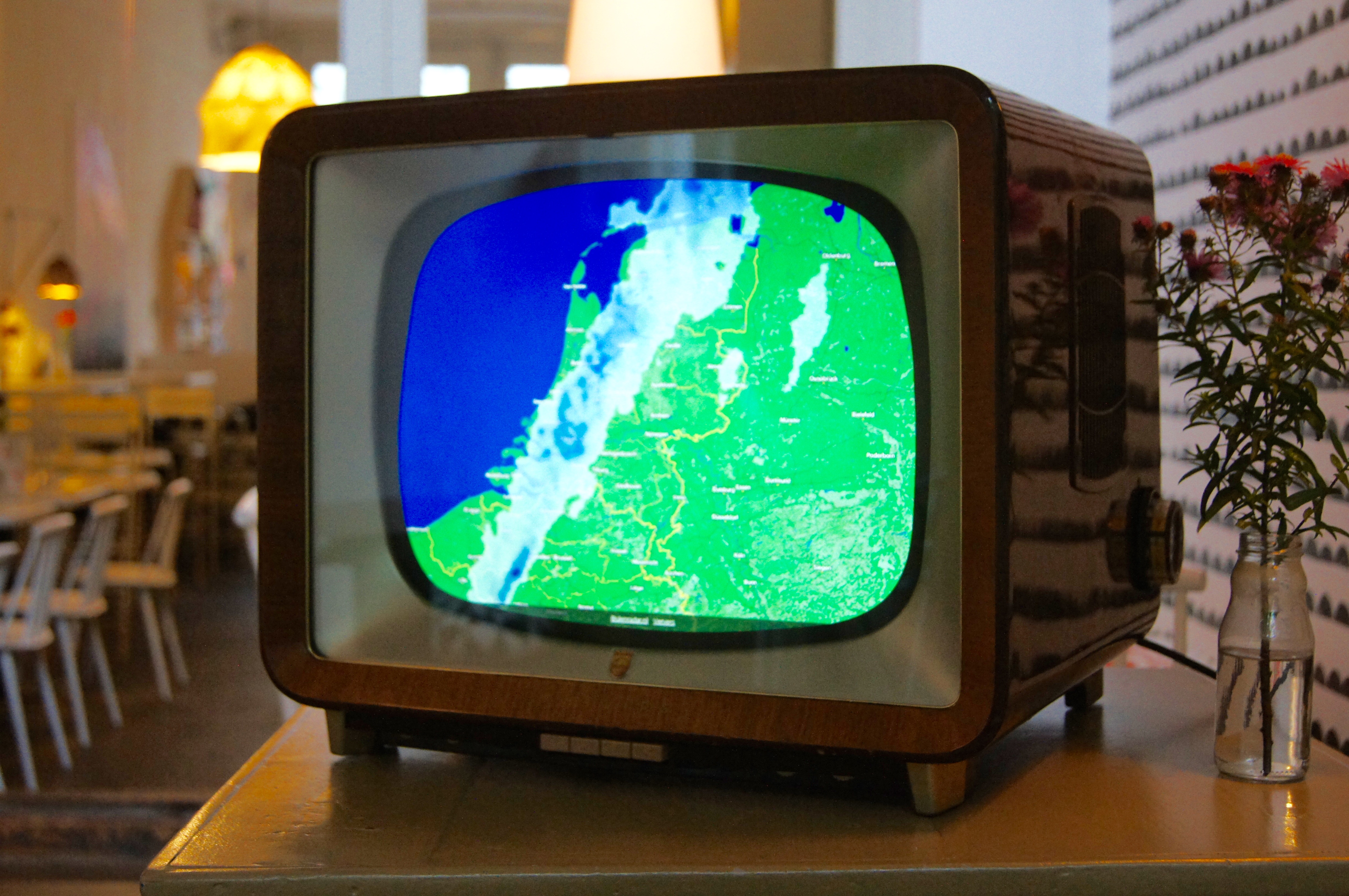 Het begon met een eerste televisie voor lunchroom Sid en Liv in Nijmegen. De eigenaren wilden graag een scherm in de zaak waarop klanten zouden kunnen zien of er regen of droog weer aankomt. Mensen vragen in zo’n koffiezaak immers na een bui altijd of het zin heeft om weer op het terras te gaan zitten. Maar een gewoon televisiescherm staat niet in zo’n mooie zaak, en zo ontstond het idee voor een mooie televisie uit de jaren vijftig met een computermonitor en een Raspberry Pi erin.